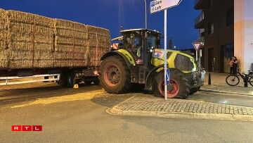 Near Cactus supermarketTwo tractors block roundabout in Mersch on Sunday evening