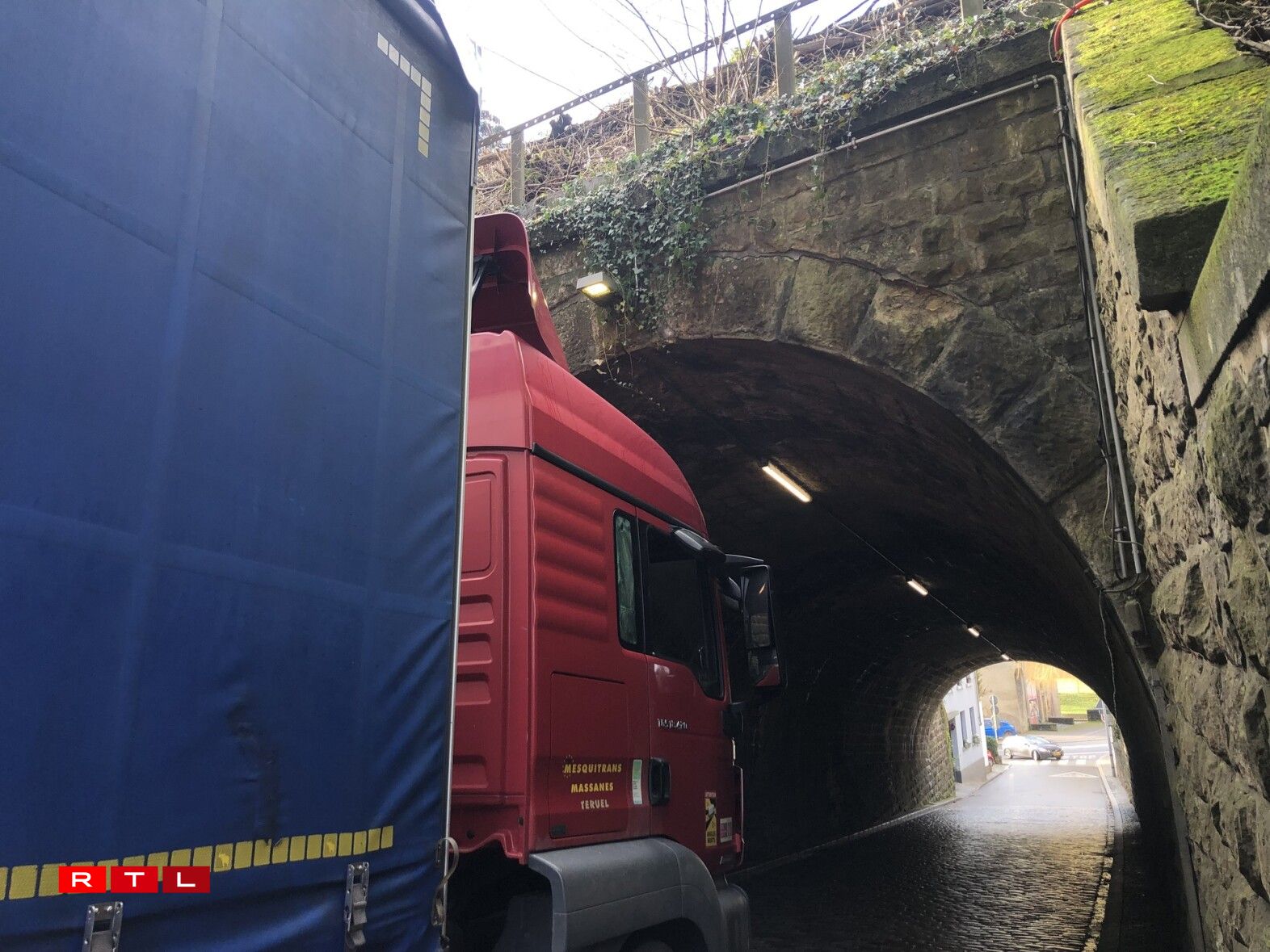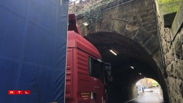 The railway bridge running over the Val des Bons-Malades has a 2.5 metre height limit. Unfortunately, a lorry driver attempted to pass under the bridge towards Pfaffenthal despite warning signs, and consequently got wedged under the structure.