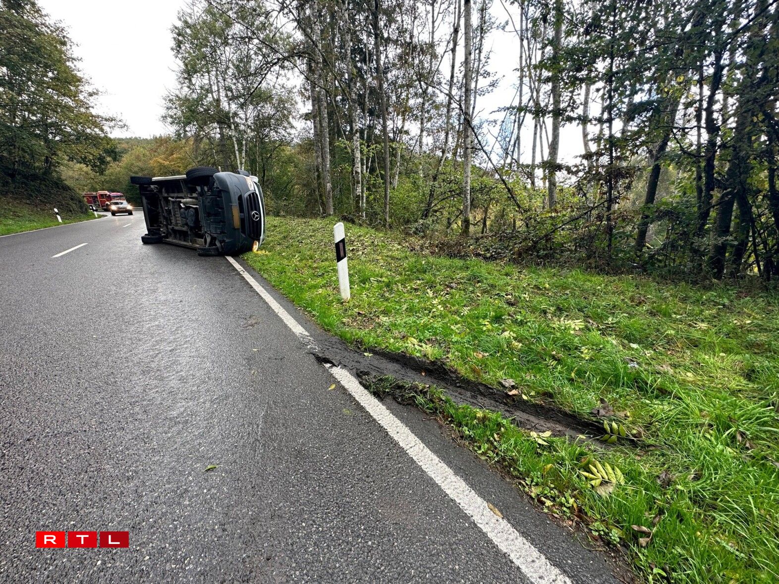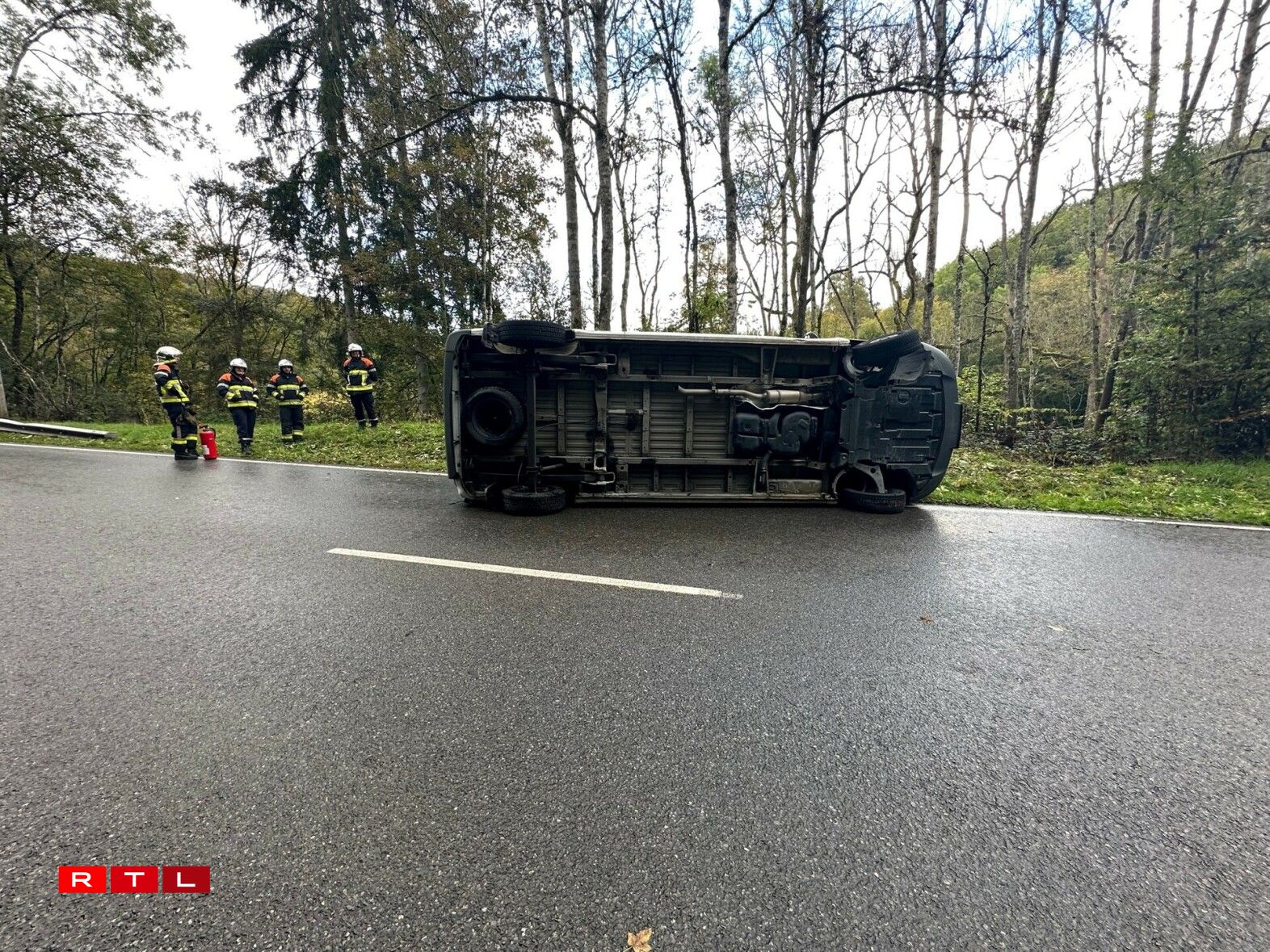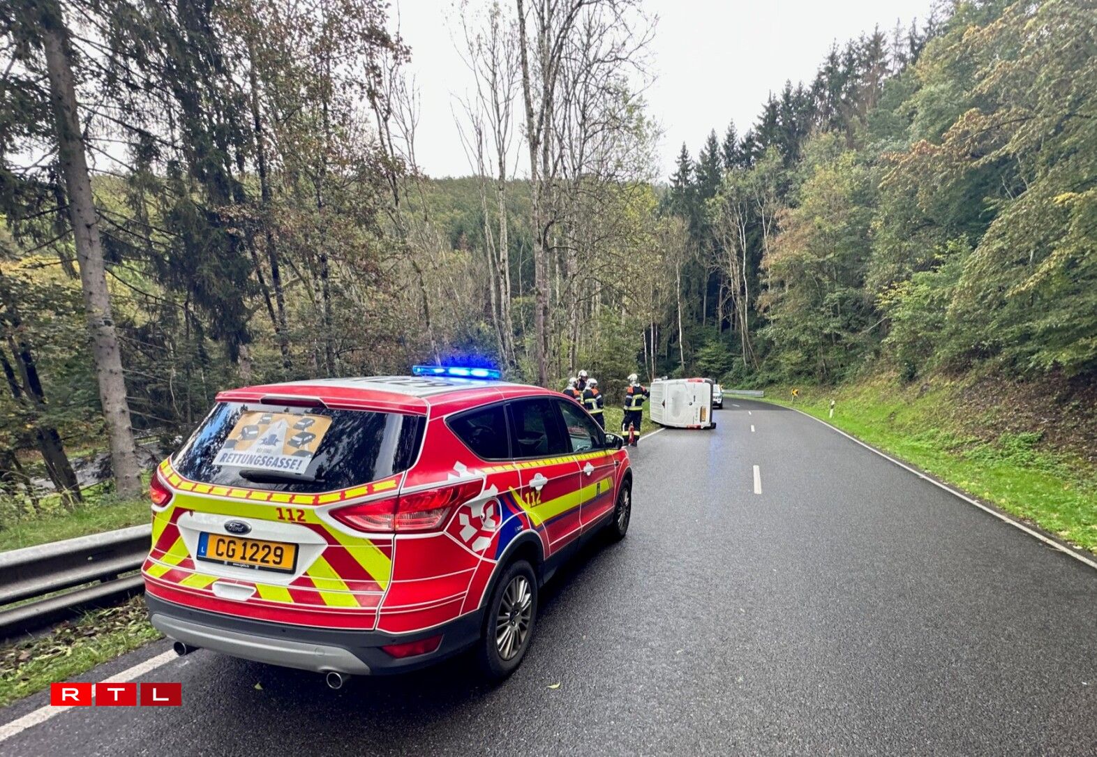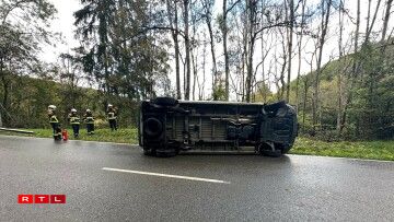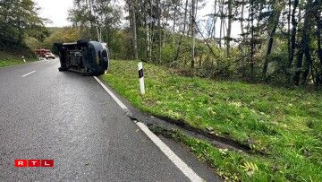 A van ended up on its side after crashing on a winding hillside road near Eschdorf on Thursday afternoon.