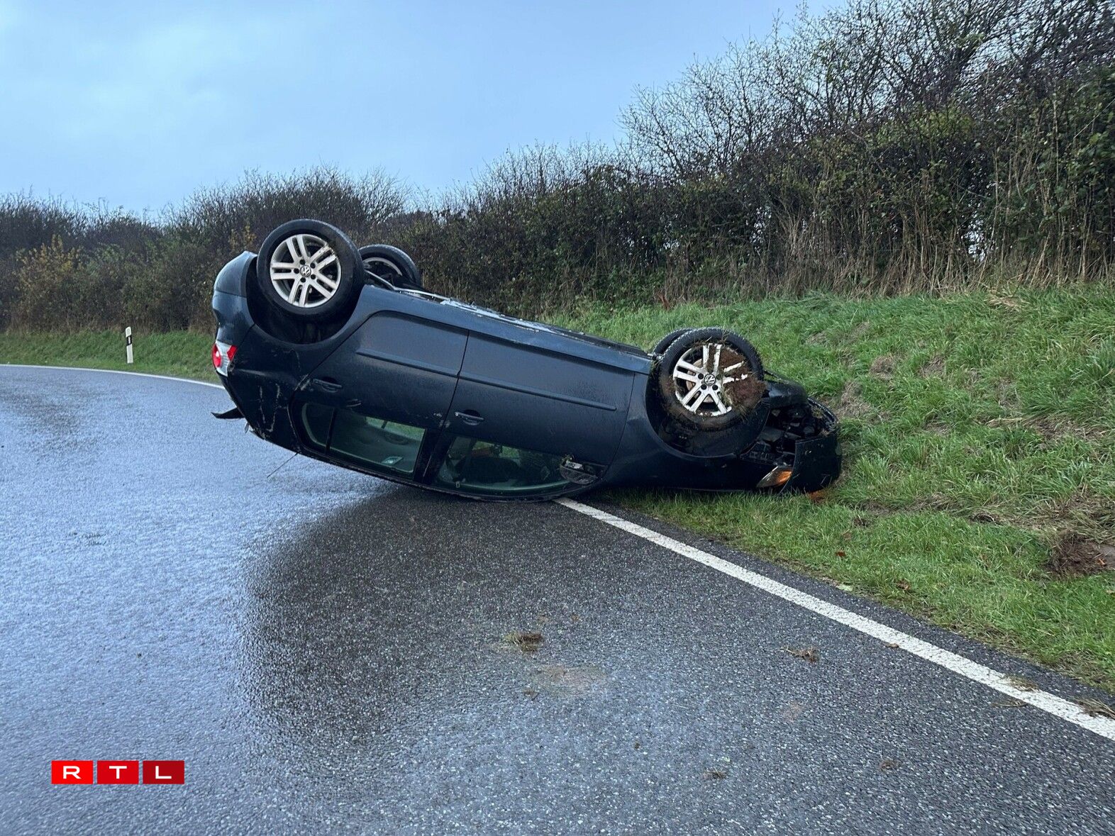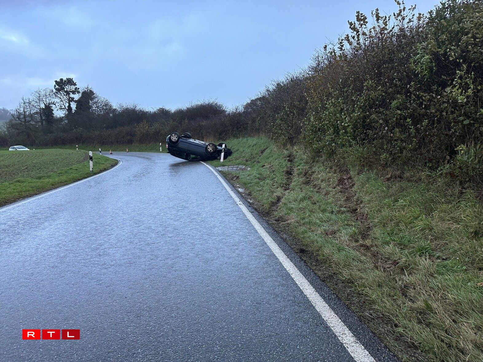 The vehicle struck an embankment after swerving round a bend, with the force of the collision and the steepness of the slope causing the car to roll and come to rest on its roof.