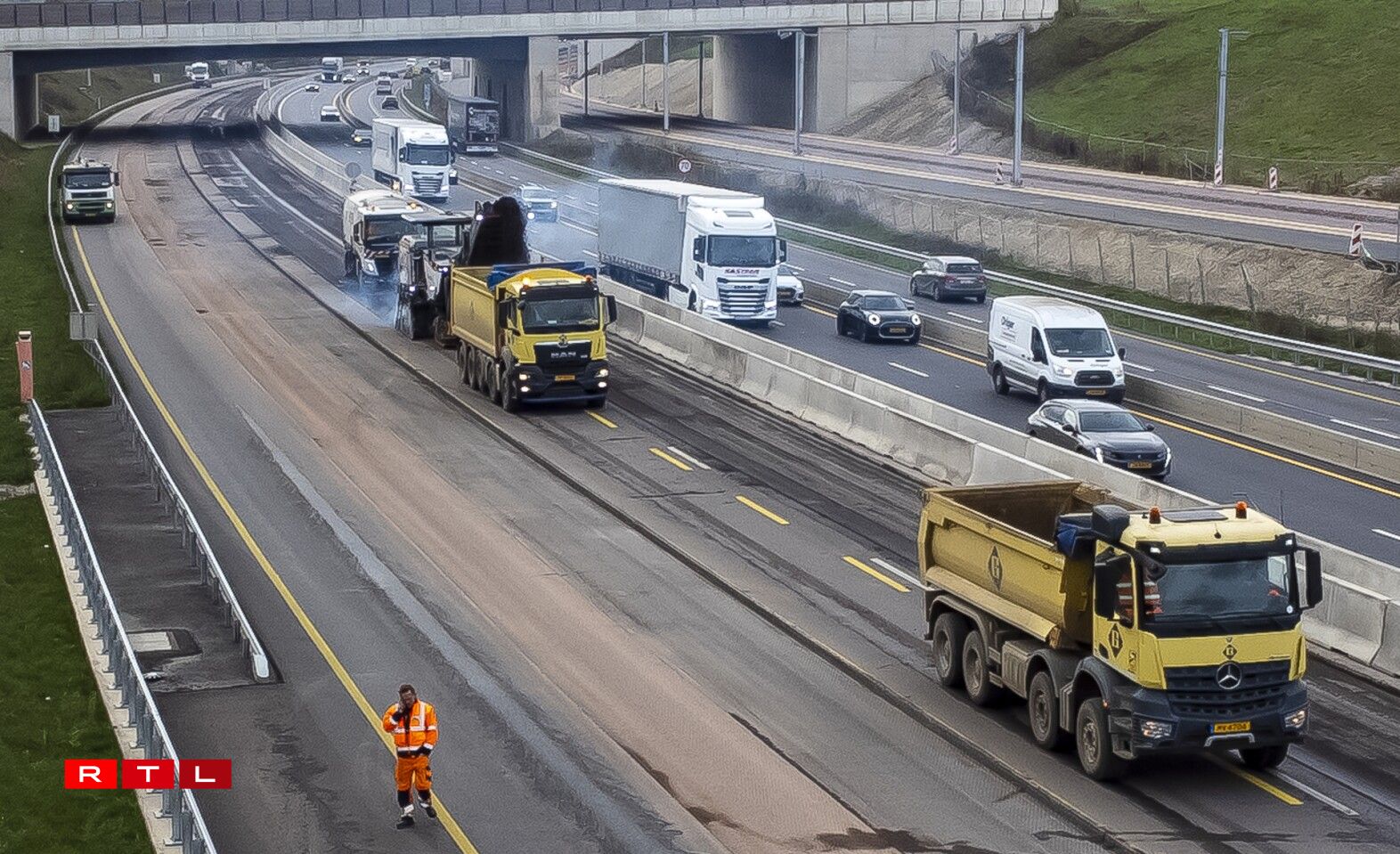 This stage involves removing the old road surface and laying a new layer across the three-lane downbound carriageway. Around 4,750 tonnes of bitumen will be used to resurface the 3.5-kilometre section between Aire de Berchem and Croix de Gasperich.
