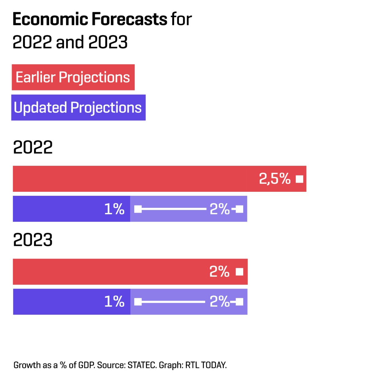 1. Luxembourg’s economy is forecast to grow in 2022 and 2023, but less than predicted.
