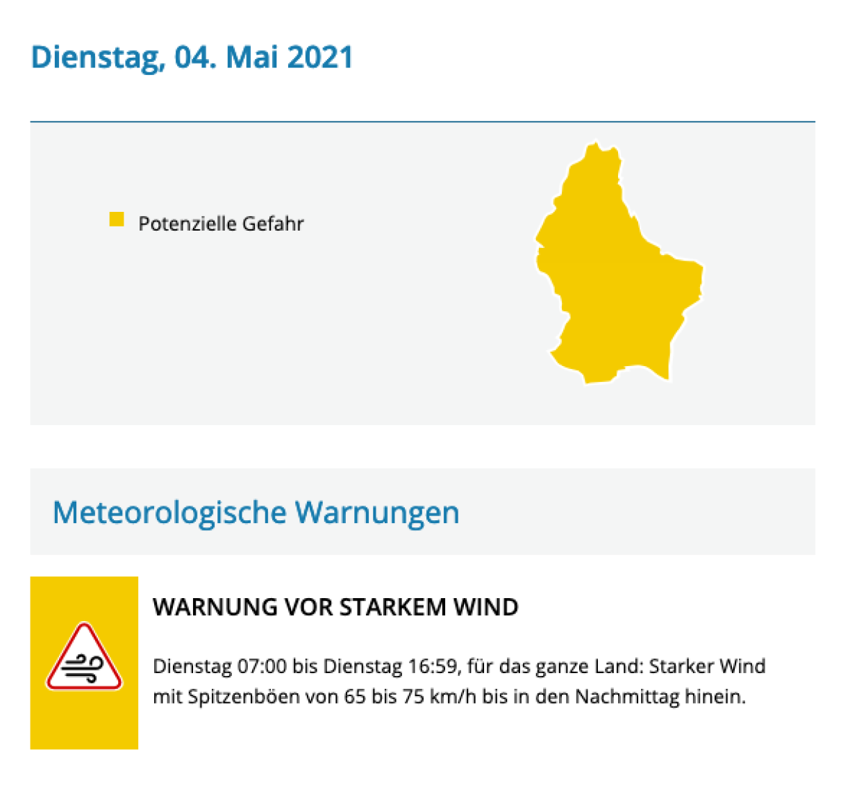 Meteolux has issued a yellow alert, as strong wind gusts are expected especially around noon, before calming down again in the evening.