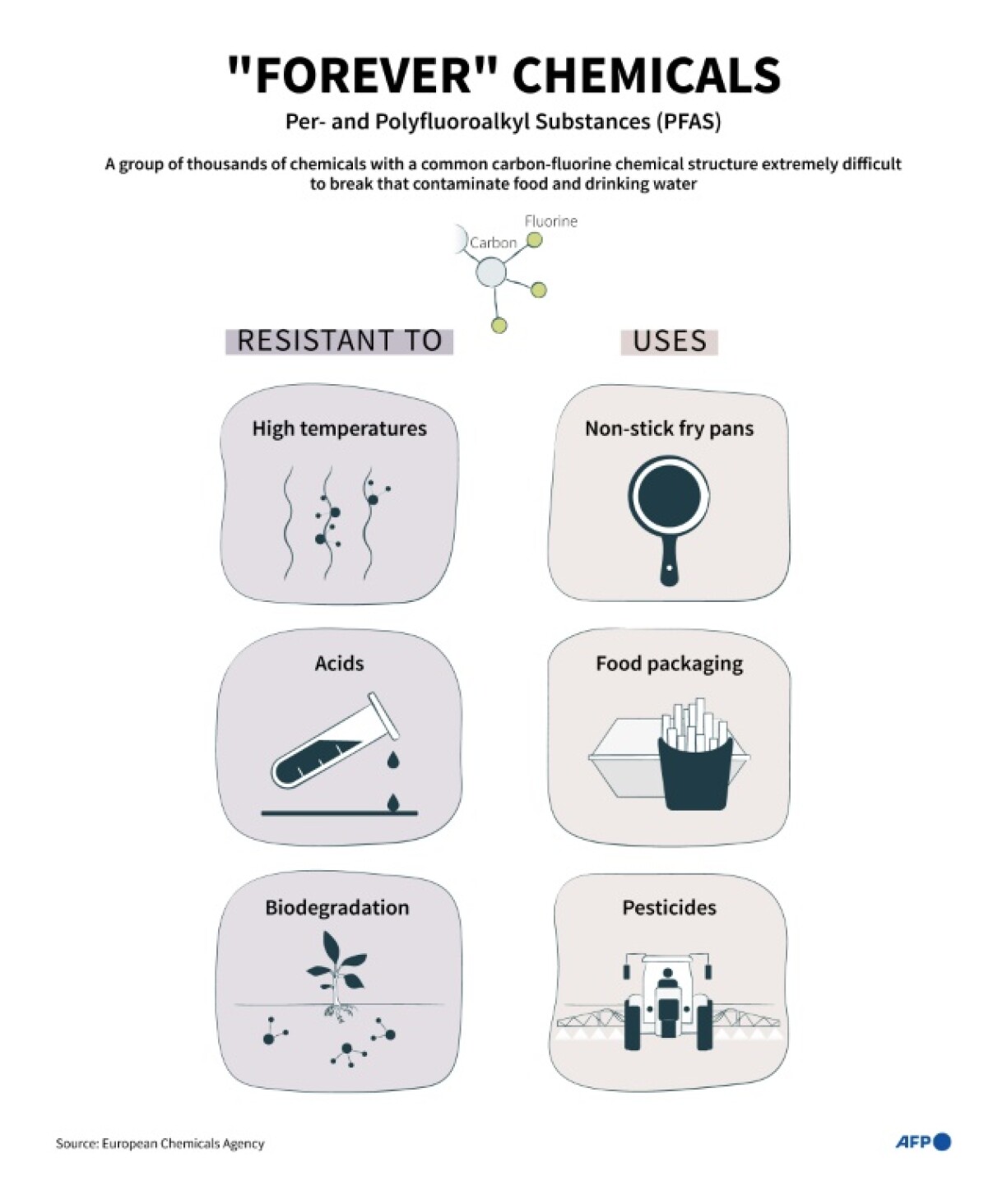 Officially known as PFAS, or per- and polyfluoroalkyl substances, they are a family of synthetic chemicals able to withstand intense heat and can repel water and grease.