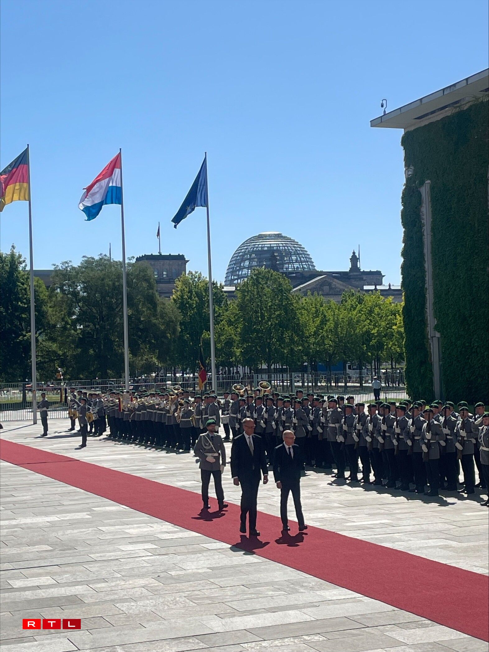 Prime Minister Luc Frieden visited Berlin on Tuesday for talks with German Chancellor Friedrich Merz, where he was received with military honours.