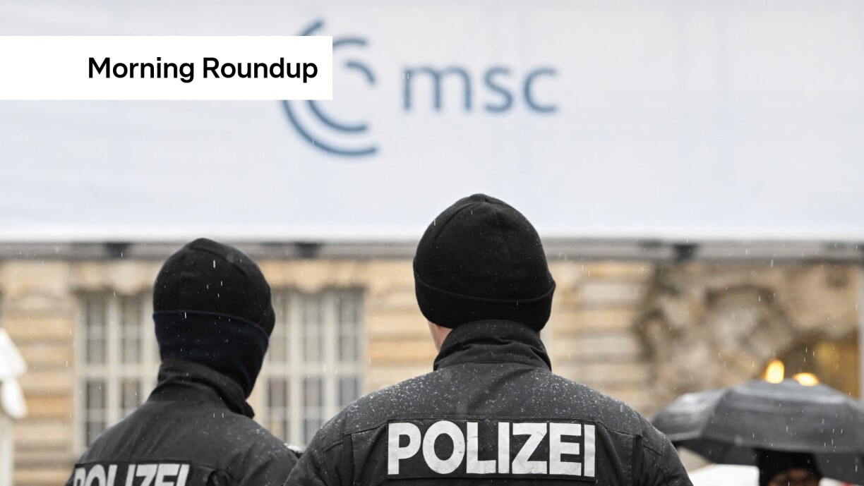 MUNICH SECURITY CONFERENCE – The Munich Security Conference opens today with nearly 50 heads of state gathering to discuss global security challenges. US Secretary of State Marco Rubio is expected to meet Ukraine’s President Volodymyr Zelensky. Among those attending are Emmanuel Macron, Keir Starmer, and Ursula von der Leyen. German Chancellor Friedrich Merz will deliver the opening address. Five thousand police have been deployed, with airspace over Munich closed.