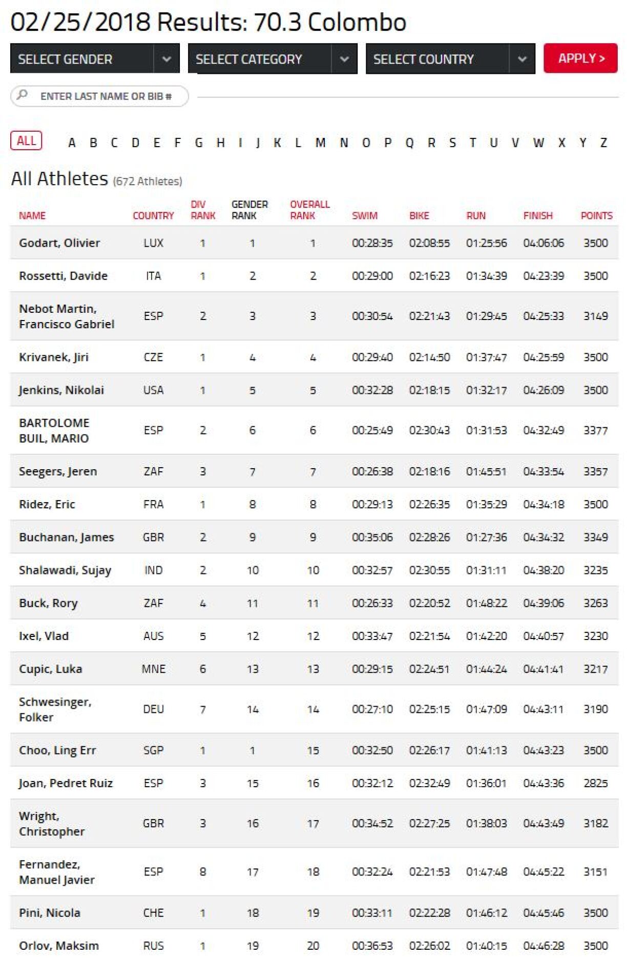 Italian athlete Davide Rosetti came second, Francisco Gabriel Nebot Martin from Spain came third. All in all, 672 athletes took part in the Sri Lankan Ironman.