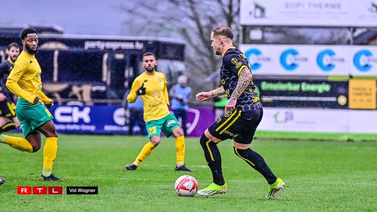 Last week, he tucked away Jeunesse’s fifth against a shaky Wiltz side in a game that had been a no-contest for much of the afternoon. His last-gasp effort did ensure a three-goal cushion between the teams but the result was hardly hanging in the balance. Not so much like this time around.