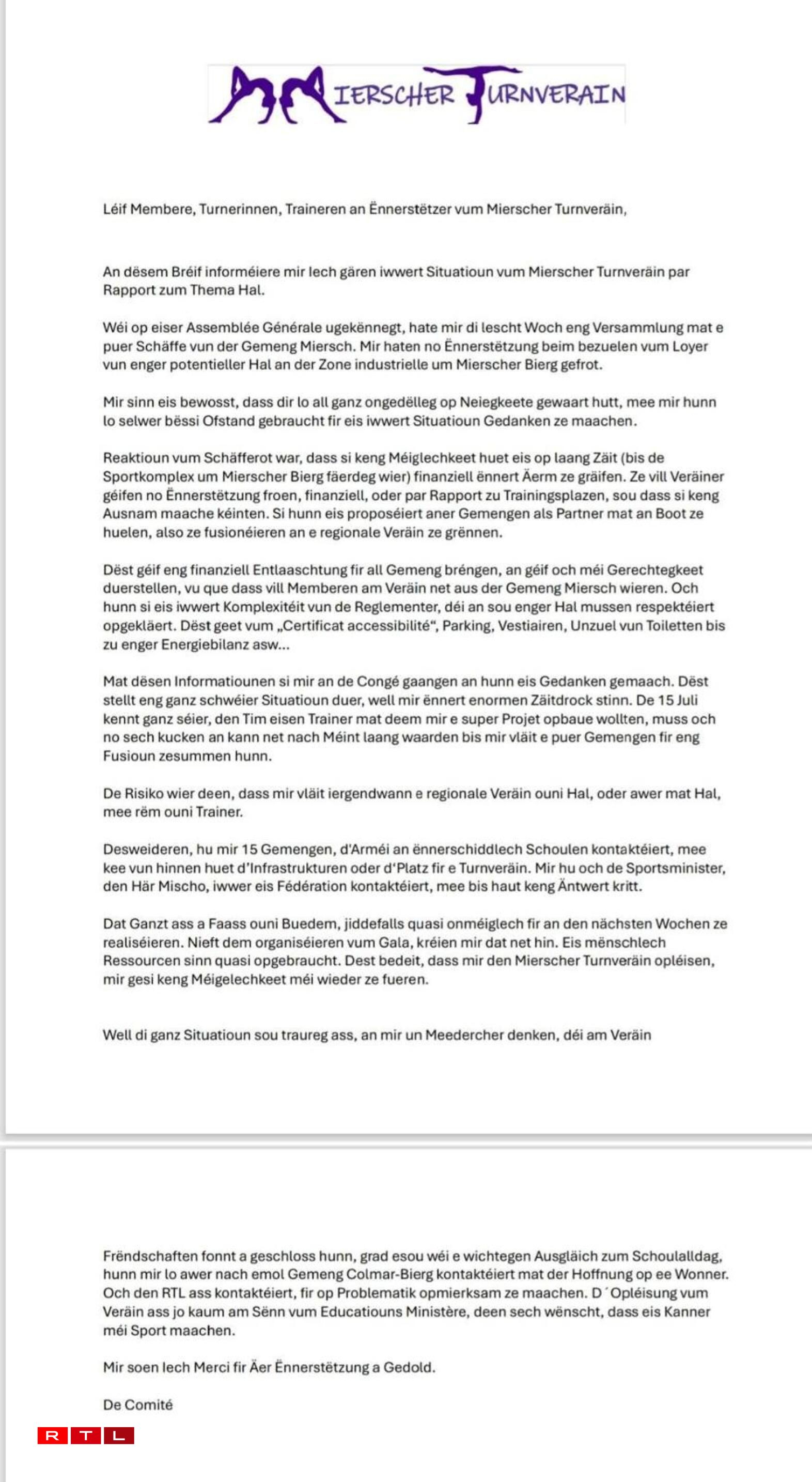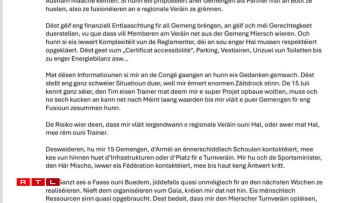 Starting next week, on 28 April, club members and representatives from the municipality will publicly share their perspectives with our colleagues at RTL.lu. The Minister of Sport has also been informed about the situation and is expected to comment.